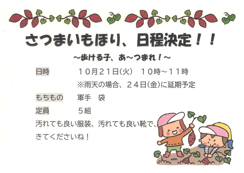 お待たせしました!!さつまいもほりの日程が決定しました🍠