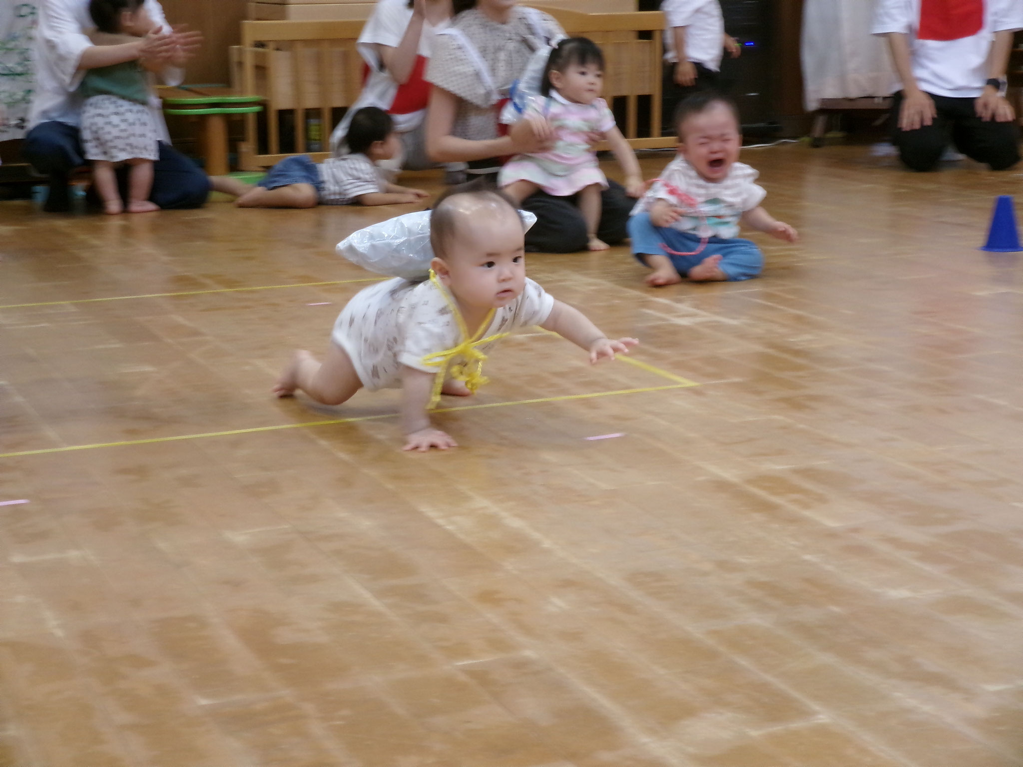 おむすびころりんハイハイレース、うさぎとかめのオムツレース(保護者だけの競技)、