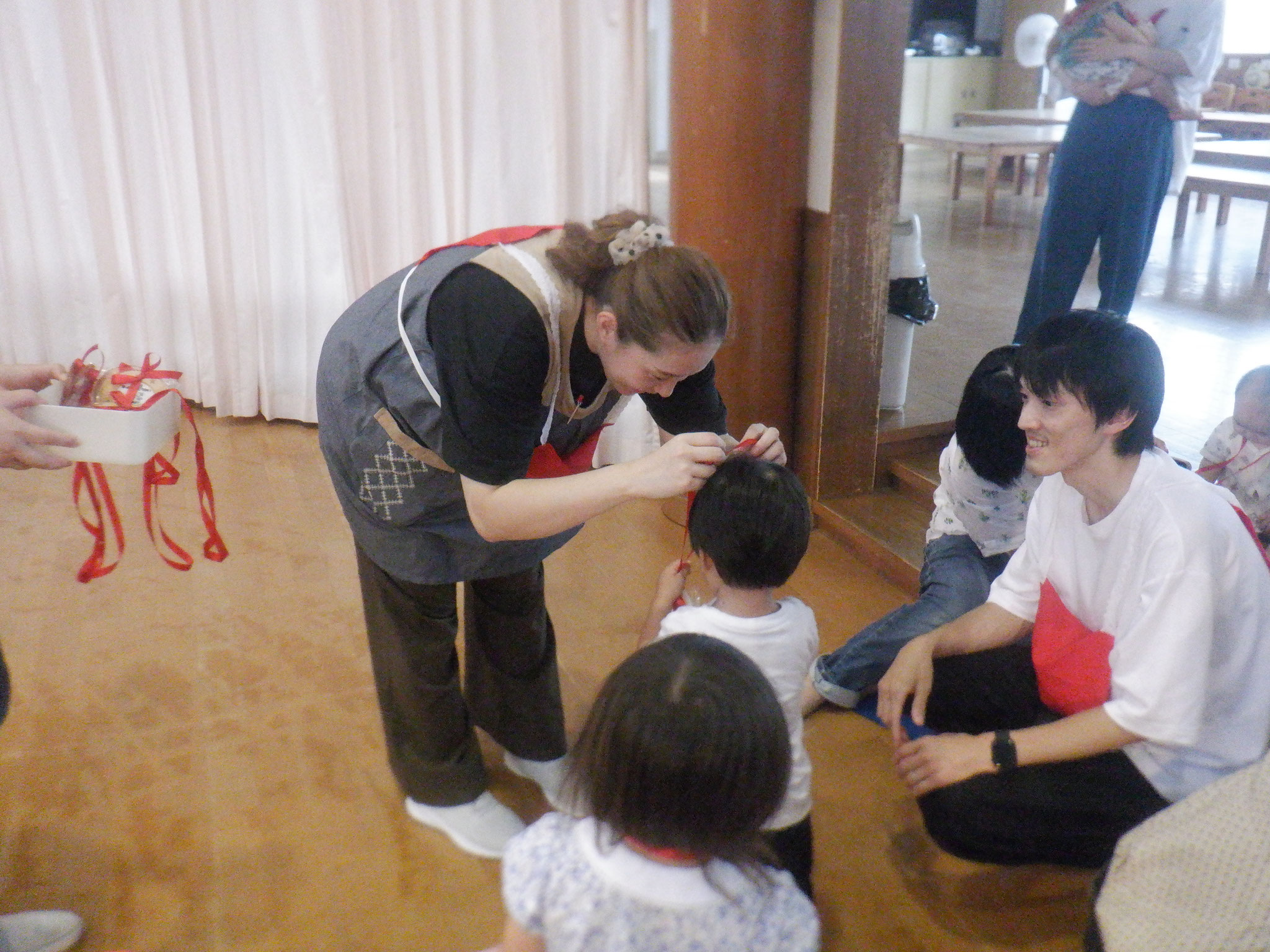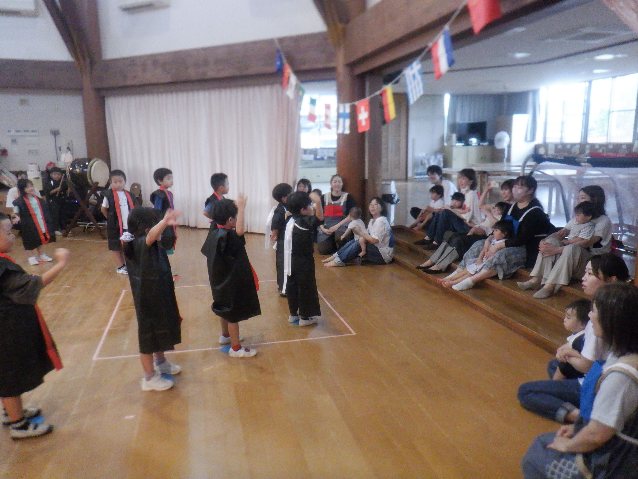 最後にはじんぼ保育園の年長児による応援団が特別出演できてくれ、