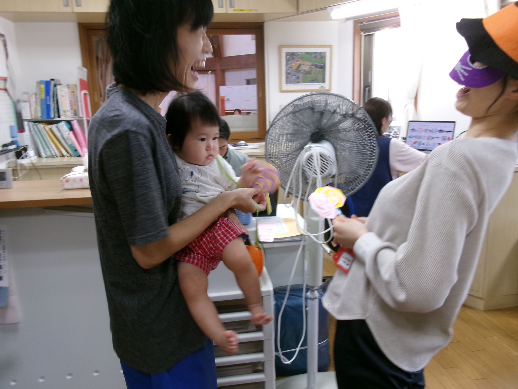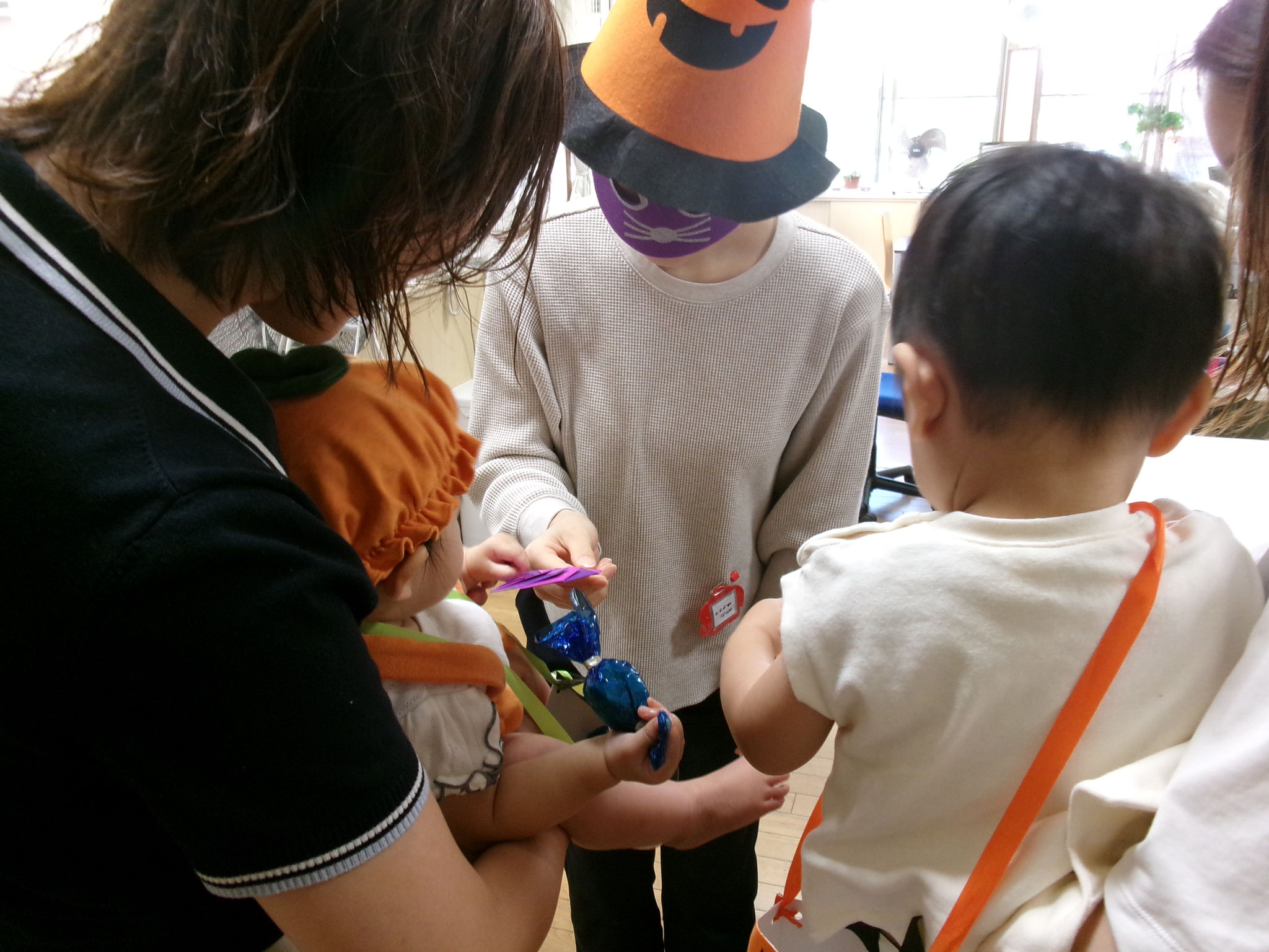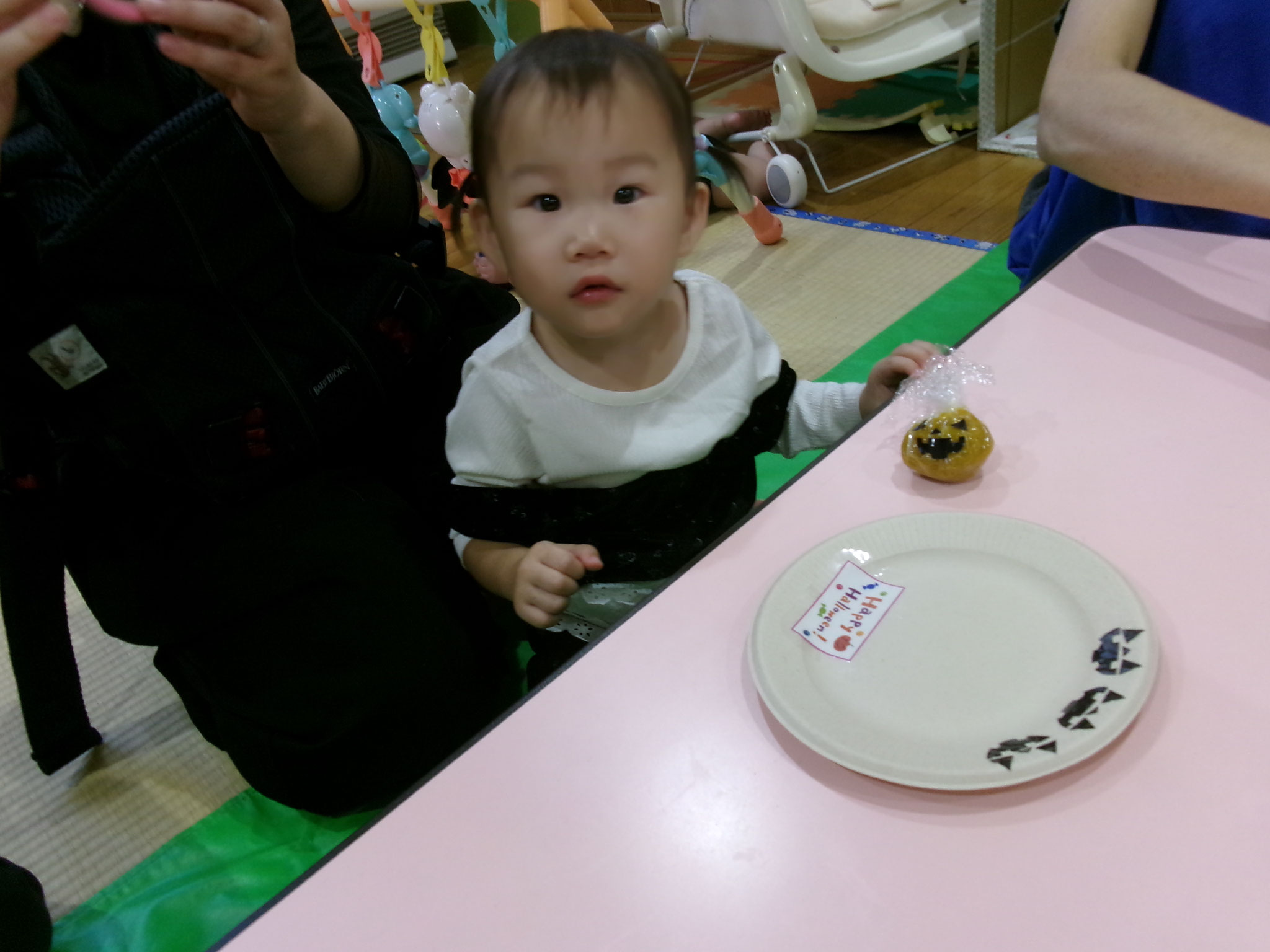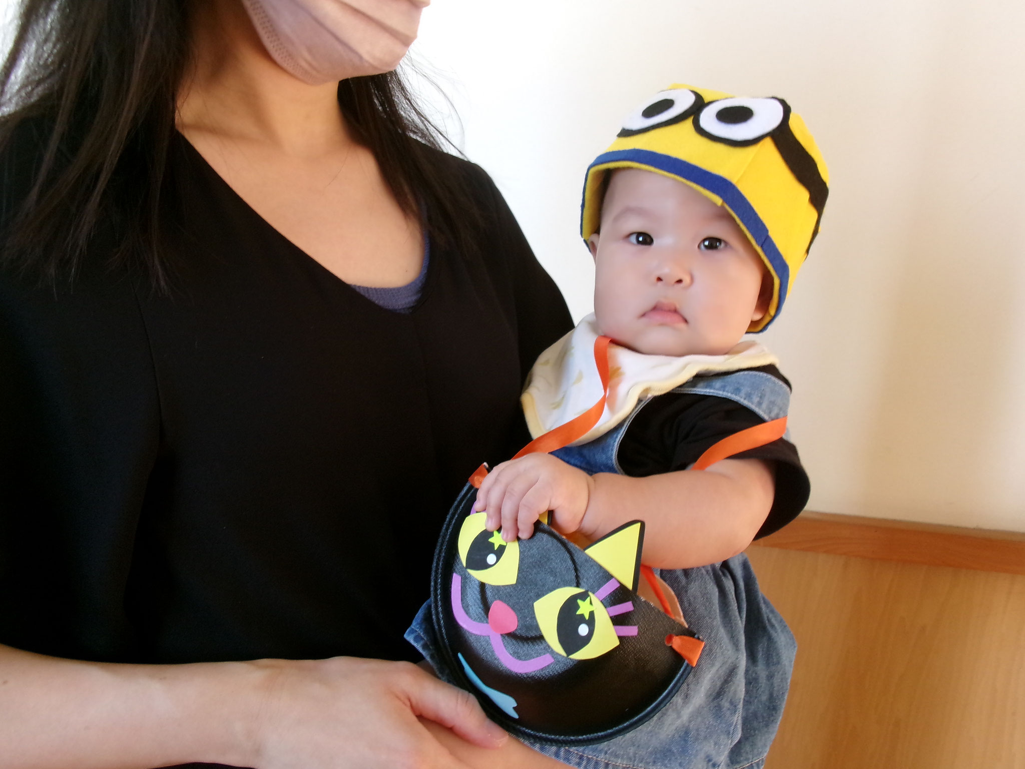 かわいく仮装してきてくれたり、ママの手作り衣装だったりと、ママ達(おばあちゃんも含め)の器用さに😲びっくり!そんな姿にぽっぽらんどお手製のハロウィンバックをつけて、じんぼほいくえん内にいる仮装した人を見つけてお菓子をもらってこよう!のゲームをしたり、地域の方からいただいたかぼちゃをペーストし、みんなでハロウィン仕様のかぼちゃ茶巾を作って、おいしく食べました😋
