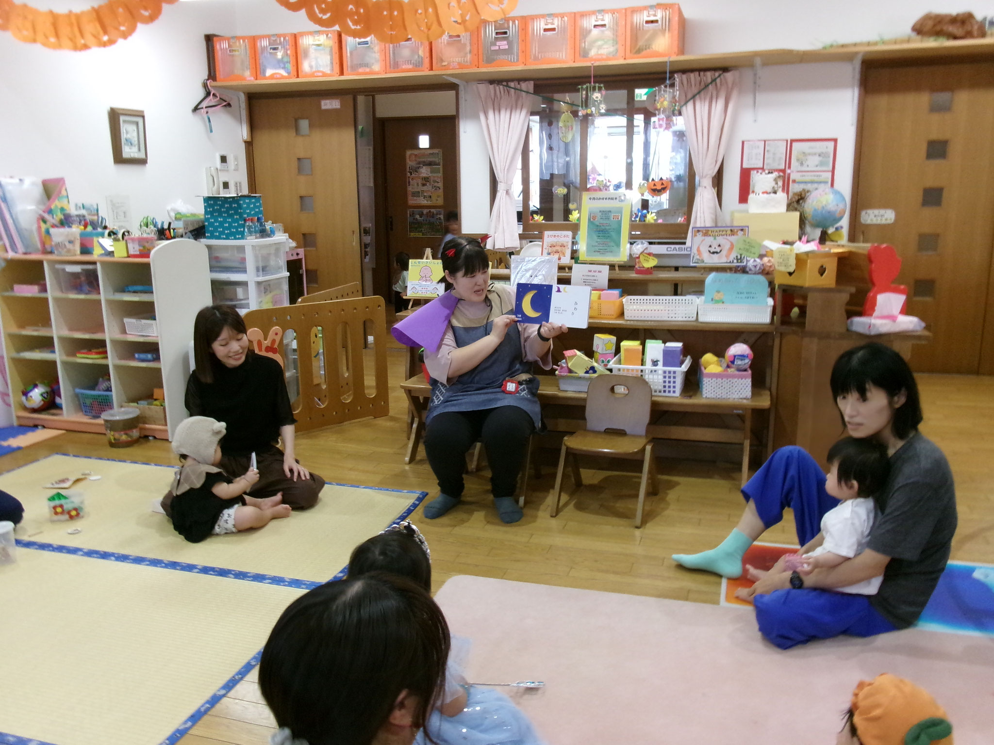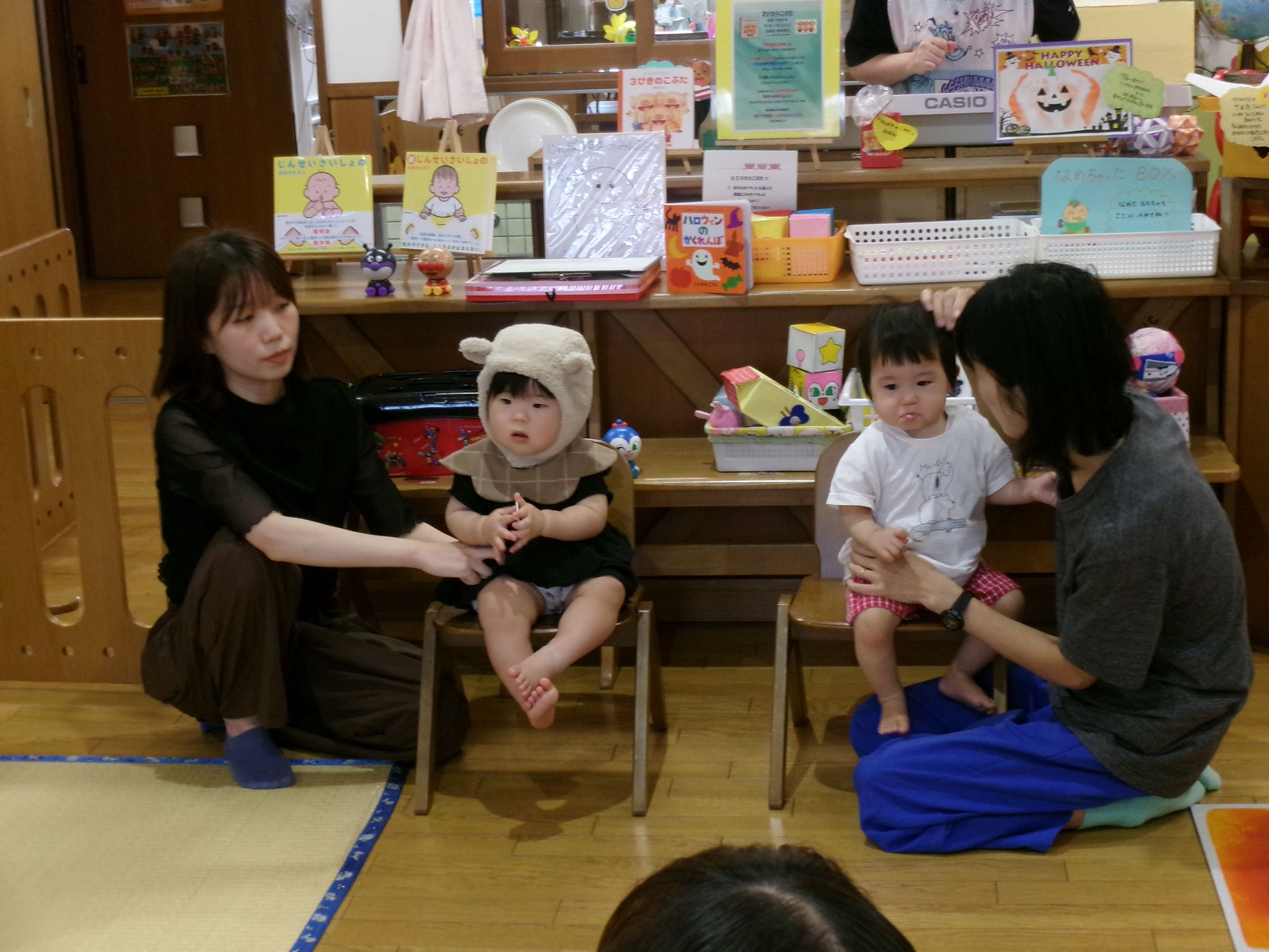 早めのハロウィンパーティーをしました🎃「ハロウィンのかくれんぼ」の絵本の読み聞かせをしました。
