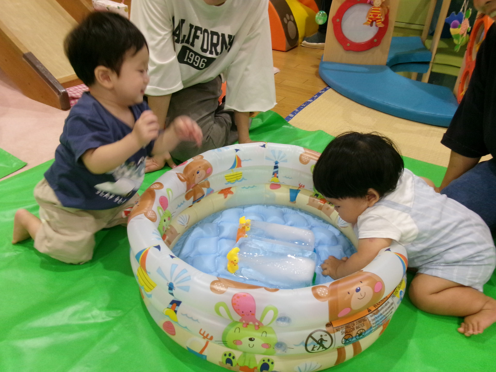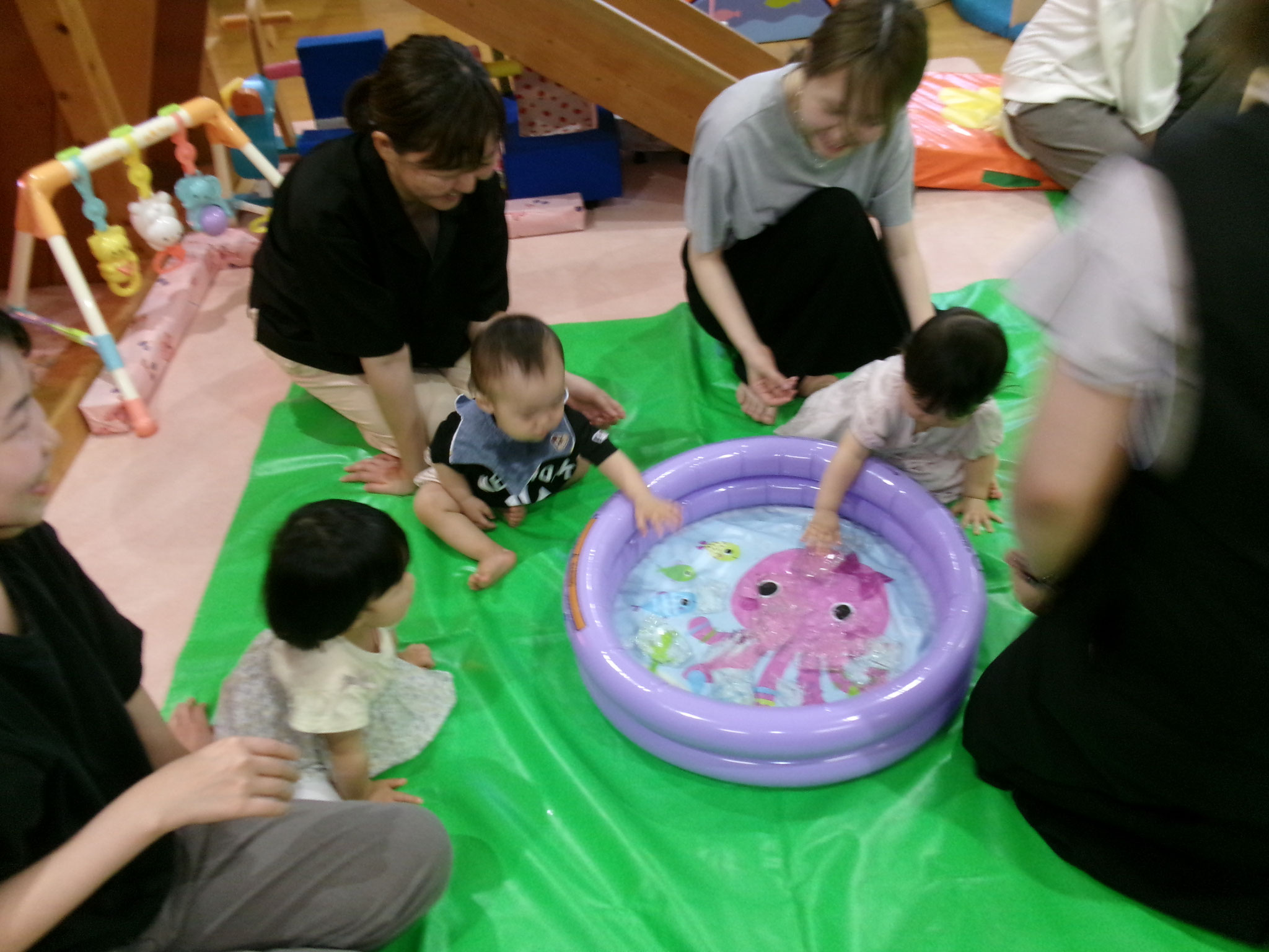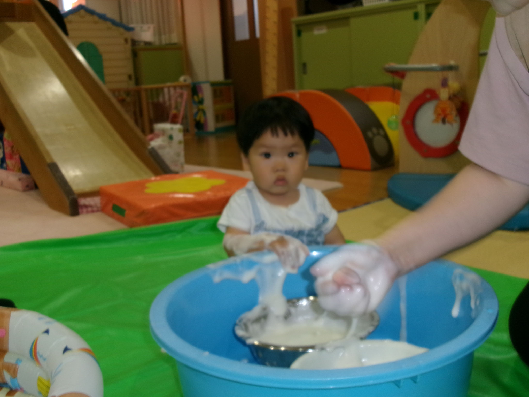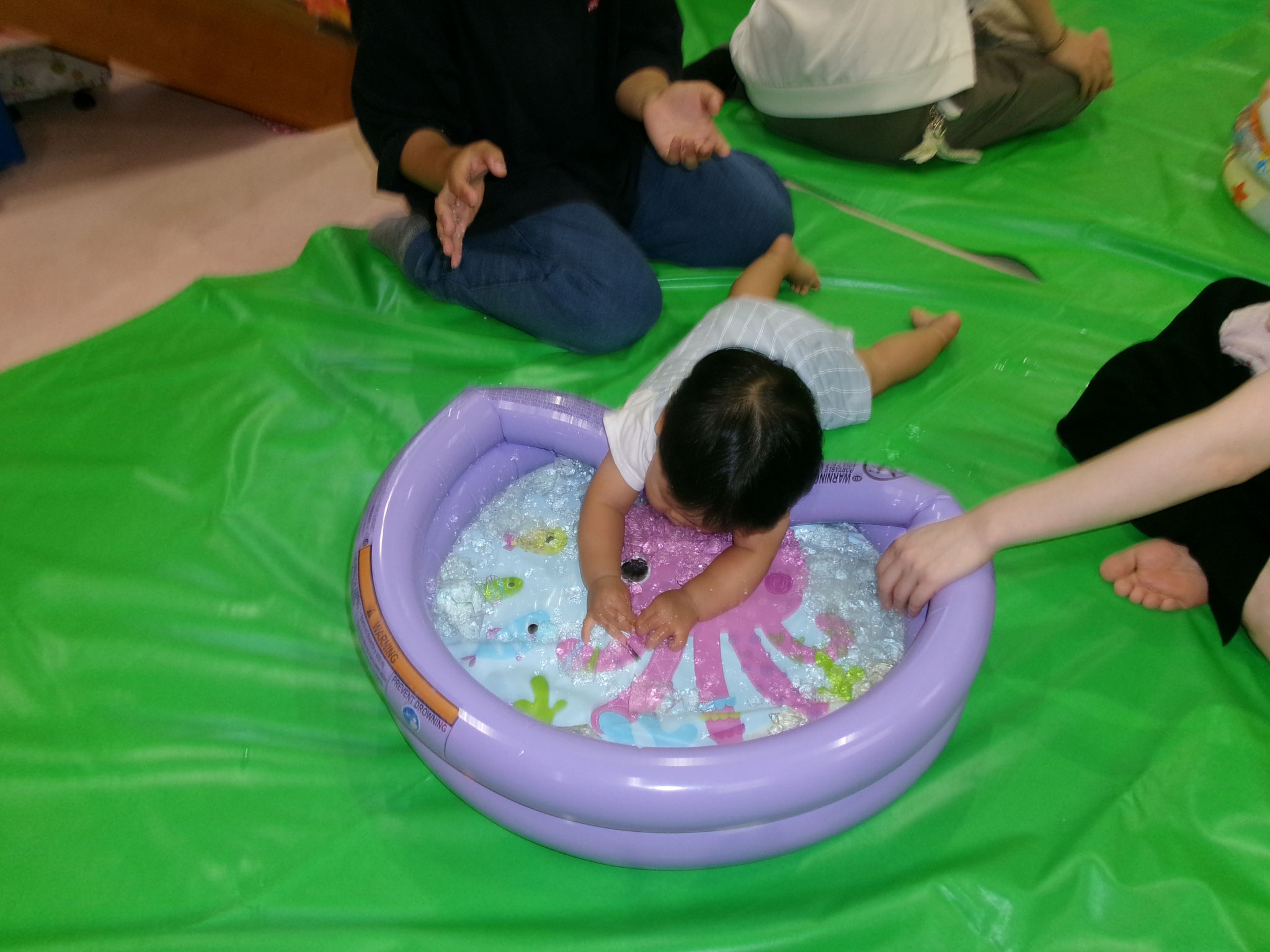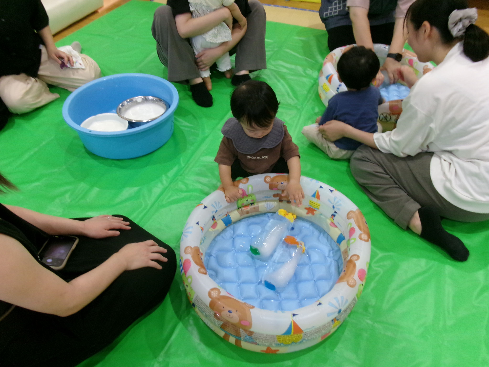 8月は、みんなに“ひんやり”な夏をお届けしようと、感触遊びをしました。