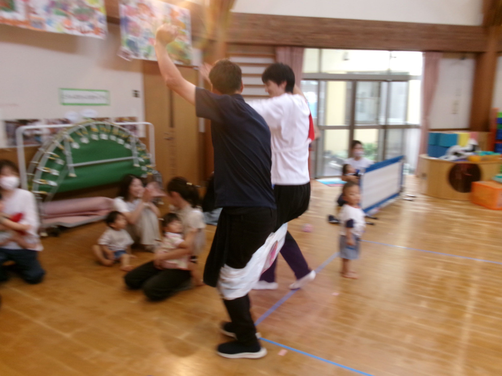 ♪キラキラ星に合わせてふれあいあそびからスタート、初ブラックライトシアターでの「たなばたのおなはし」、みんなで天の川のおほしさまHallo(貼ろう)ゲーム、天の川のバルーンあそび、「おこだてませんように」の絵本の読み聞かせをして楽しみました。そして、な、な、なんと!!!じんぼのひこぼしさまとおりひめさまがきてくれ、おりひめさまのだーーーいBTSジョンググのひこぼしさまは、カササギのむつみせんせいとまゆみせんせいによって、無事会えました💓☆