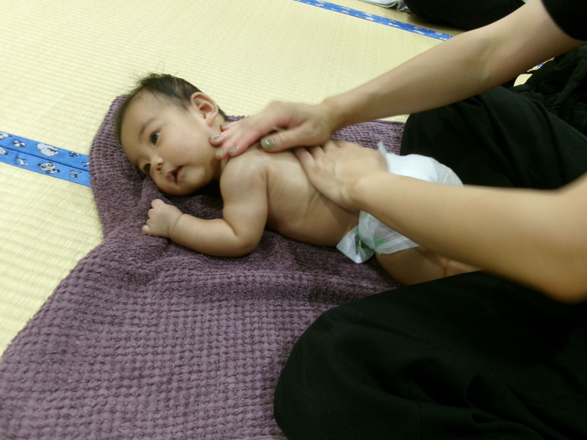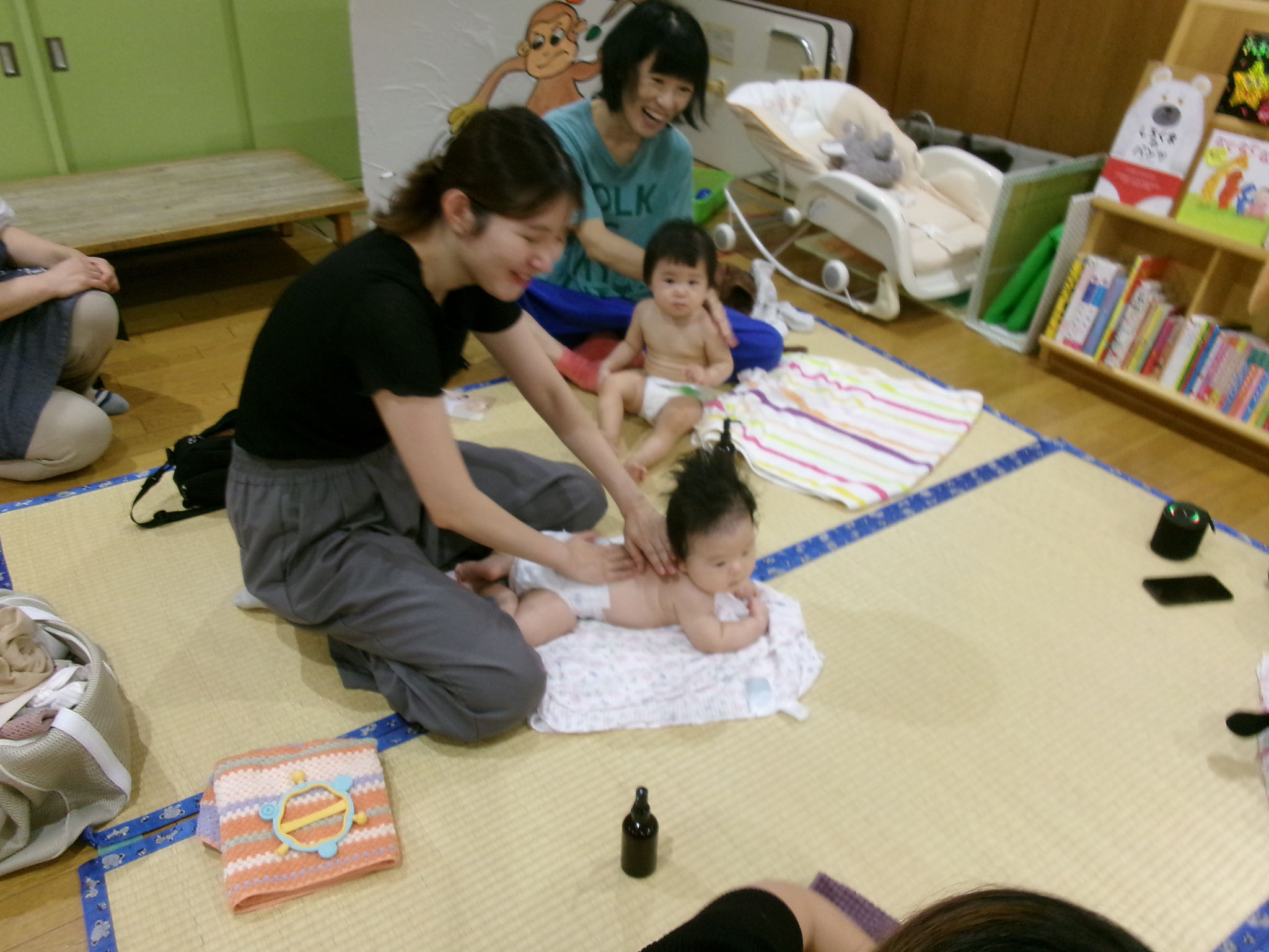 ベビーマッサージをした赤ちゃん達は、運動をいっぱいした大人とおなじ感覚です。川端先生のベビーマッサージ後に、ママのあったかい手でマッサージしてもらって、気持ちよくて、疲れちゃったかな、、、、ウトウトするお子さんもおられ、かわいいーーー💓姿に先生達もメロメロでした!