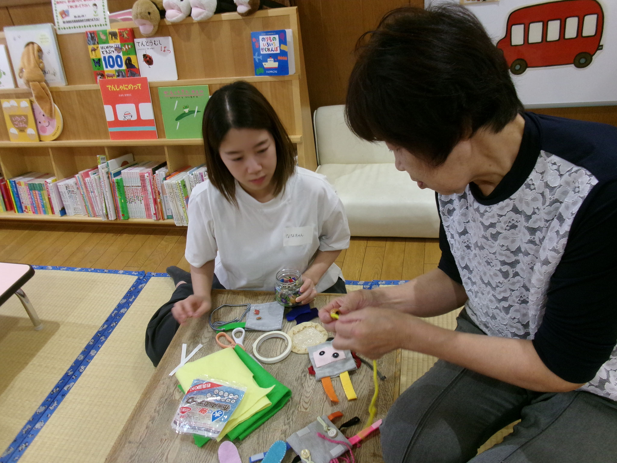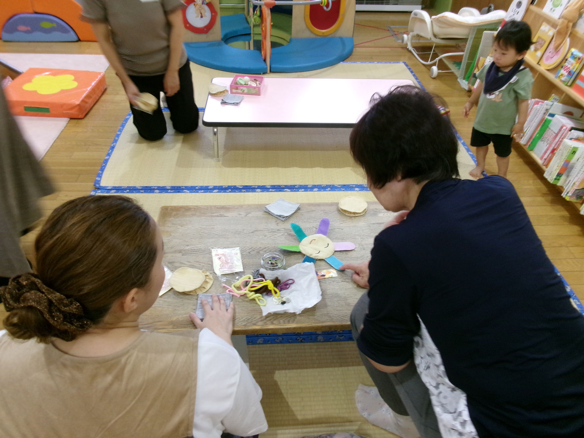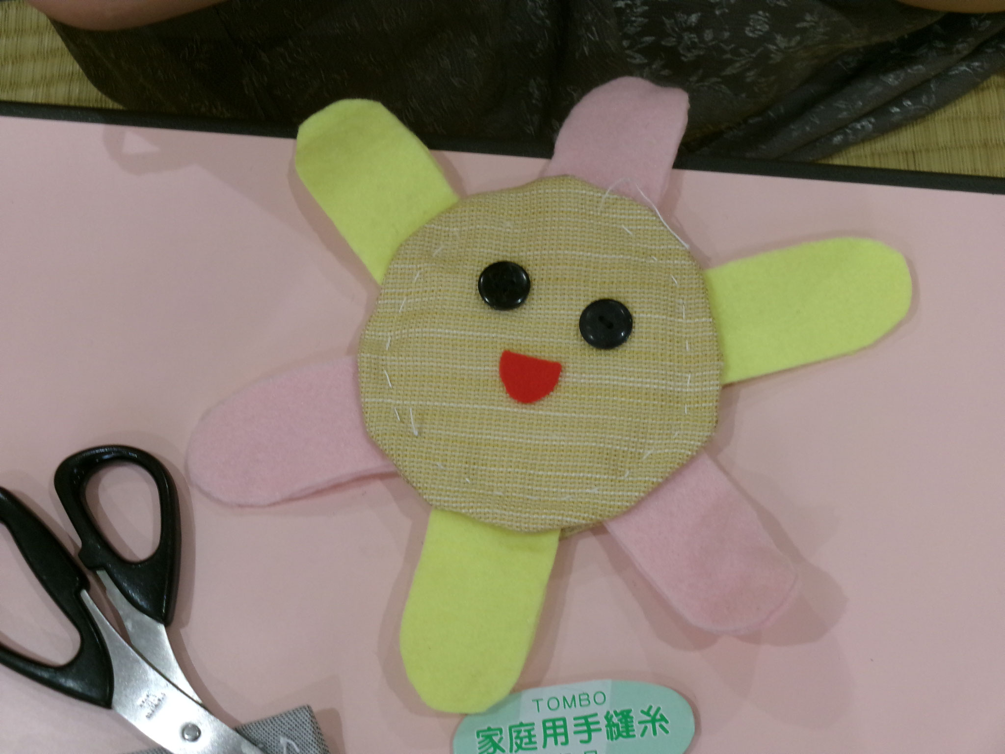 布用両面テープや針と糸をつかっての、お子さんに遊ばせたいおもちゃをつくってみようという
